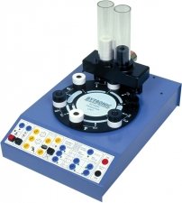 The RTU consists of a component dispensing mechanism positioned above a turntable. A turntable with metal pegs represents the assembly station that can be rotated in a clockwise or anti-clockwise direction with a two speed control. Using a control signal it is possible to dispense and assemble black and white rings from the clear plastic tubes onto the pegs in various combinations.