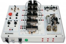 ViewThe Electro-Pneumatic Training Panel is a compact and comprehensive training panel comprising cylinders, valves, both electrical and electro-pneumatic, that are easily connected through 4mm colour coded terminals and 4mm pneumatic quick action terminations, this makes the EPTP is an ideal introduction to Electro-Pneumatics. The student can study single and double acting cylinders using various types of valves. The EPTP comprises power supply, On/Off switch with indicator light; emergency stop; two-way selector switch; 5/3 monostable valves, 5/2 monostable valve, 5/2 flip flop Valve, 5/3 open centre valve, 5/3 closed centre valve, flow regulators, single acting cylinder, double acting cylinder and .magnetic reed switches