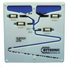 ViewThe Sorter Unit (SRU) is designed to be used as a control application from PC or microcontroller. The SRU includes the use of opto-electronic sensors for counting and sorting and control of linear solenoid actuators.
