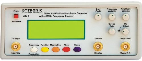The 9201 3MHz function pulse generator is a versatile instrument with an FM external modulation and a 20×4 LCD screen. The 9201 unit operates at frequencies from 0.3Hz to 3MHz and at various operating modes such as sine, square, triangle, ramp, pulse and TTL. With a frequency accuracy of ±0.5% it is a highly accurate instrument practical for modern laboratories.