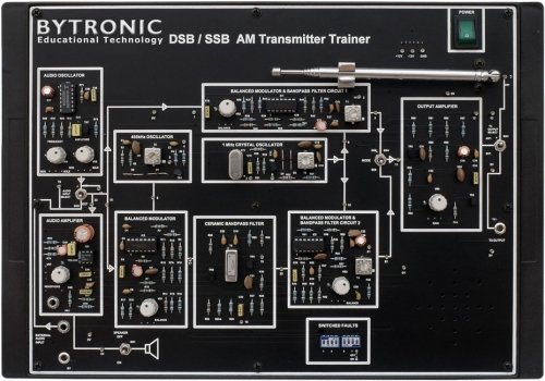 The 7501 DSB/SSB AM transmitter trainer is part of an analogue communication range which provides all the necessary inputs, test points and connections for experimentation. The 7501 trainer teaches students the basics of DSB/SSB Amplitude modulation and transmission systems through measurement of voltages via the on-board test points.