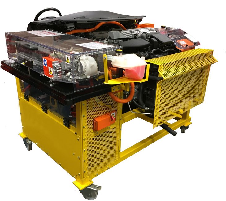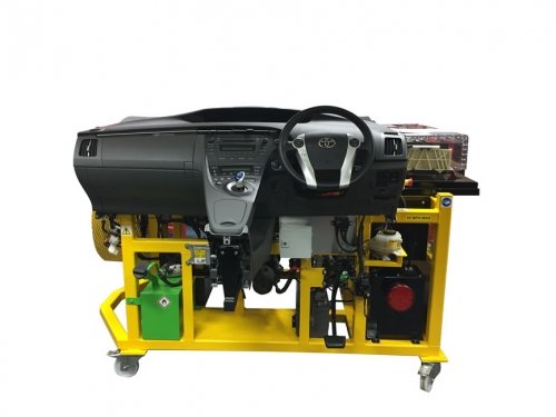 Our fully operational petrol/electric hybrid trainer comes complete with original components from a Toyota Prius. The trainer comes complete with cooling, exhaust, Ignition, Petrol Engine, start, HV system, CVT transmission and diagnostic functionality. The unit is supplied with an energy monitor which allows the students to view the regeneration of the high voltage systems during a driving cycle.