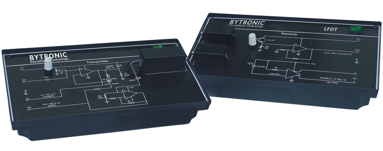 The Laser fibre optic trainer is part of our communication range, the LFOT teaches students the principles of Laser diodes, optical fibres and optical communication. Students can use the LFOT trainer to transmit via optical cables or free space while enabling the student to observe the output signals. The unit teaches the students the concepts of laser technology in an easy and practical way.