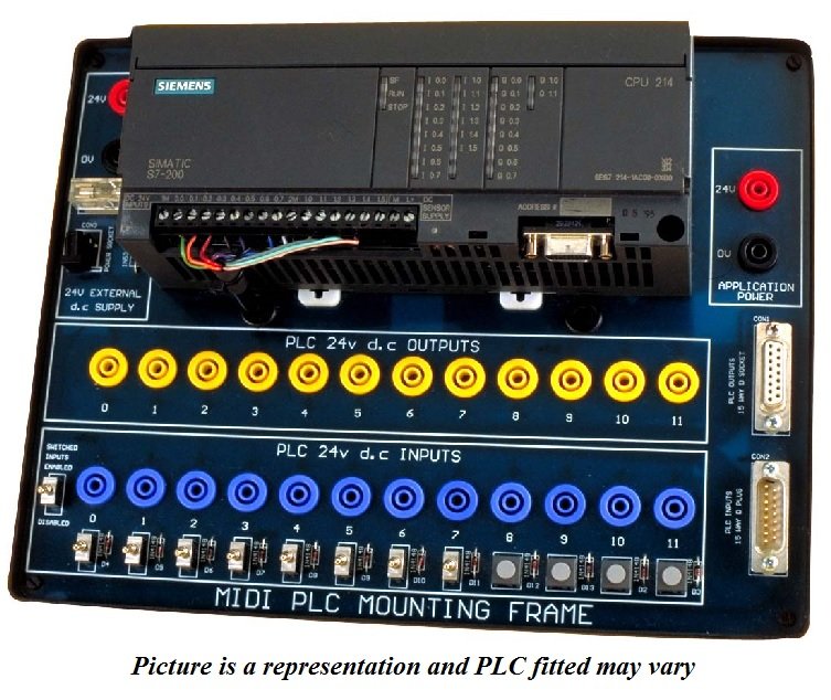 The Bytronic PLCSF range consists of a mounting frame and PLC combination based around a Siemens S7-200. The Simatic S7-200 family of programmable controllers are a compact and powerful micro PLC solution for automation tasks. They are also easily expandable with various digital and analogue modules available. The S7-200 communication port connects to a PC allowing the CPU to be programmed using Siemens STEP7 Micro/WIN32 software. The mounting frame gives easy access to the PLCs I/O capabilities providing an effective means for the student to test and debug their program prior to connecting to the application.